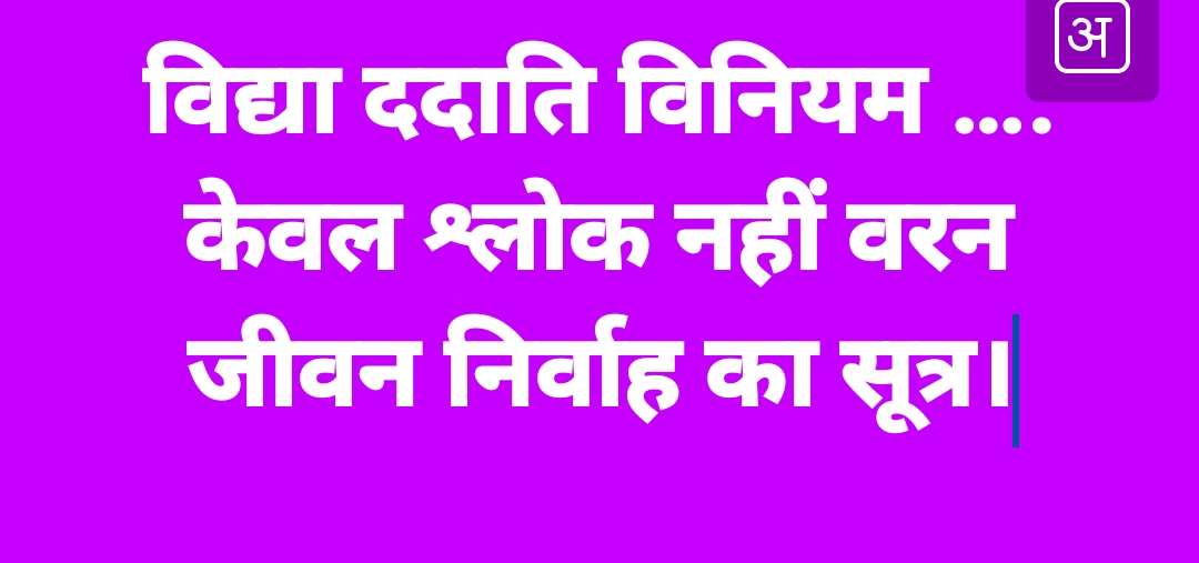 विद्या ददाति विनियम …. केवल श्लोक नहीं वरन जीवन निर्वाह का सूत्र,संस्कृत का यह उद्धरण एक श्लोक नहीं वरन जीवन के क्रमिक निर्वाह की अवधारणा का एक सार सारगर्भित लेख है।बस जरूरत है पंक्तियों में छिपे गुढार्थ को समझने की जिसका तथ्यात्मक वर्णन संस्कृत ग्रंथ हितोपदेश में संकलित है।